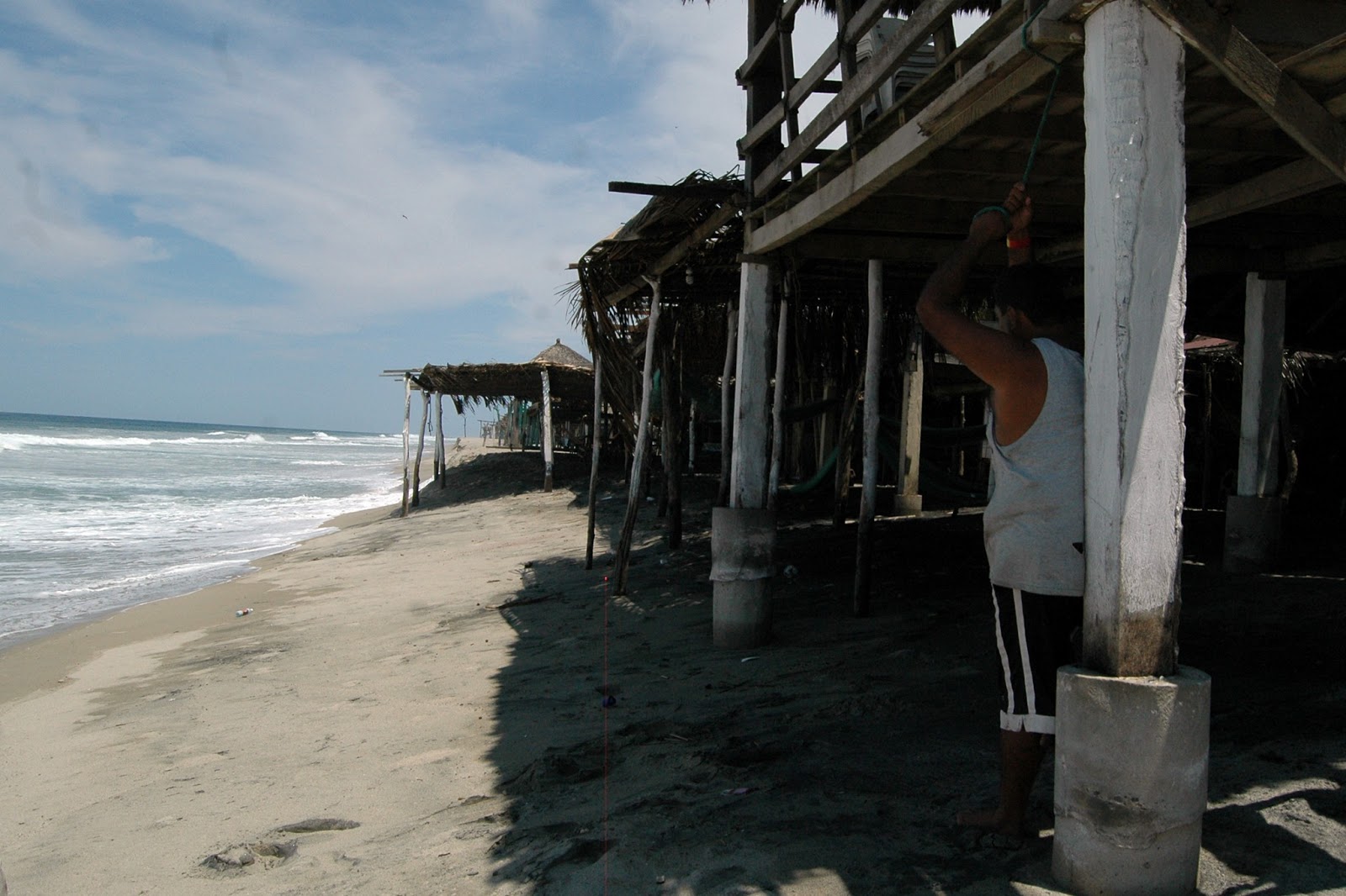 El presidente municipal corroboró los daños ocasionados en Puerto Marques, al caminar por lo que queda de la franja de playa, en el tramo de Majahua a la cancha deportiva del poblado, además de visitar los restaurantes con mayor afectación.