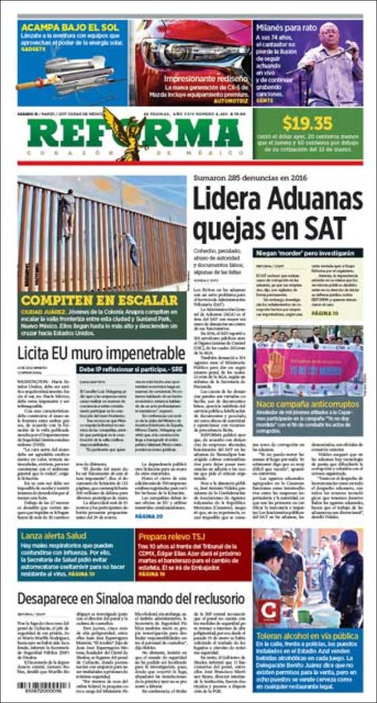 Primeras planas de este sábado 18 de marzo del 2017